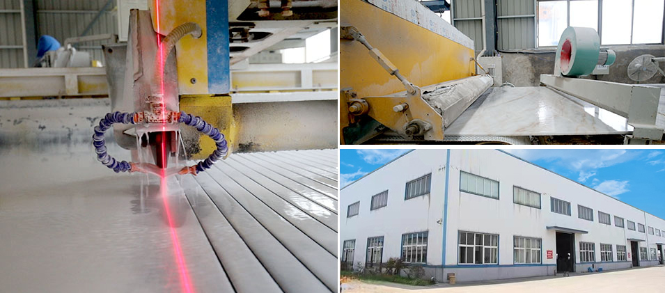 The manufacturer's production workshop covers an area of about 30 acres and is equipped with over 20 machines: automatic polishing machines, water jet machines, carving machines, edge cutting machines.